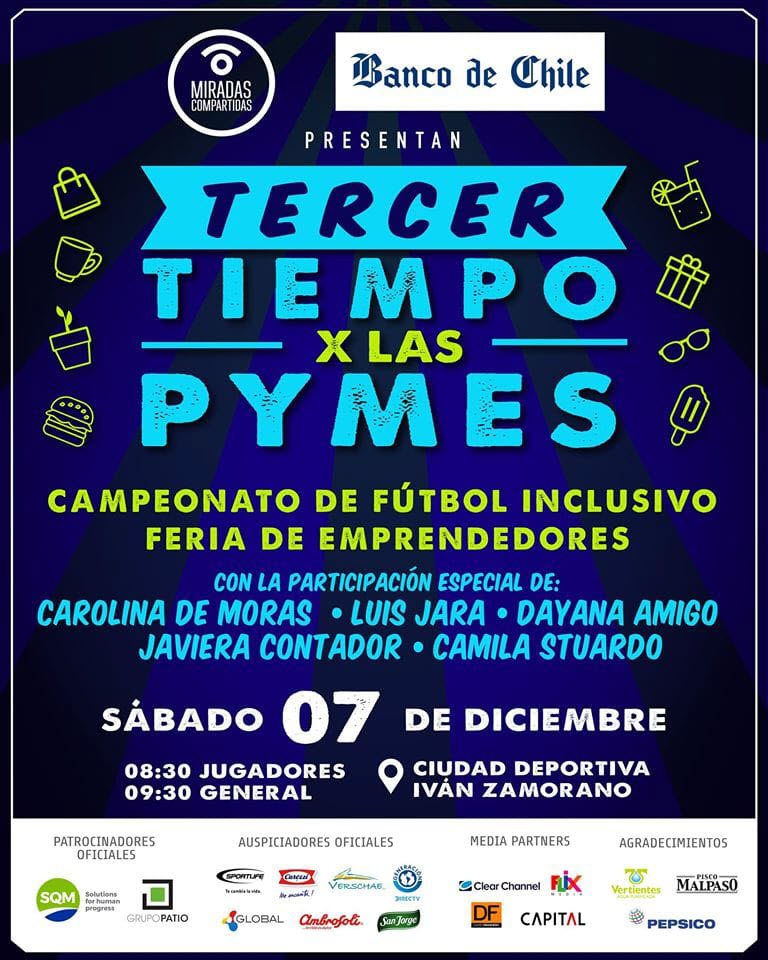 Miradas Compratidas organiza la III versión de la Copa Interempresas, evento que reúne a 24 marcas que juegan junto a sus de alumnos de las Escuelas de Fútbol de de Santiago, Viña del Mar, Valparaíso, La Calera, Tocopilla y Antofagasta. Este año y a raíz de la contingencia a nivel nacional, se sumó ASECH (Asociación de Emprendedores de Chile) con quienes se realizó una feria de emprendedores con el fin de apoyar a las pymes, la que corresponde a la Feria Tercer Tiempo por las Pymes.